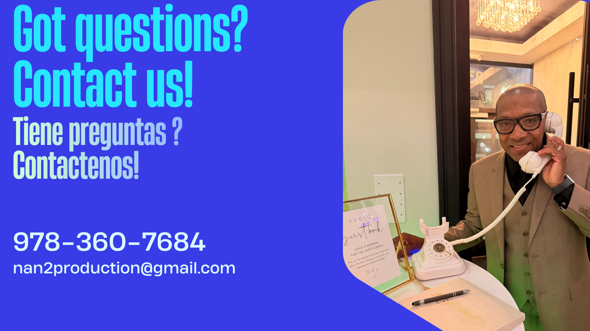 Nan2 Production, LLC., is an entertainment company with over 15 years of experience serving not only the Merrimack Valley but also the surrounding cities. Our specialties include weddings, quinceañeras, sweet sixteens, corporate events, and social gatherings.